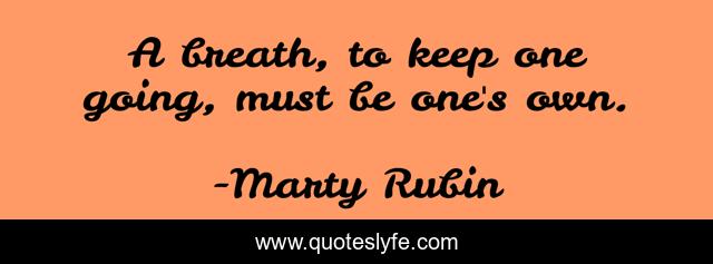This page presents the quote "A breath, to keep one going, must be one's own.". Author of this quote is Marty Rubin. This quote is about endurance, self-sufficiency,.