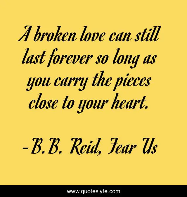 "B.B. Reid, Fear Us Quotes." Quoteslyfe.com, 2025. Fri. 05 Dec. 2025. <https://www.quoteslyfe.com/quote/A-broken-love-can-still-last-forever-173110>.