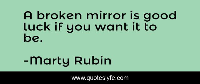 This page presents the quote "A broken mirror is good luck if you want it to be.". Author of this quote is Marty Rubin. This quote is about behaviour, faith, attitude, perception, superstition,.