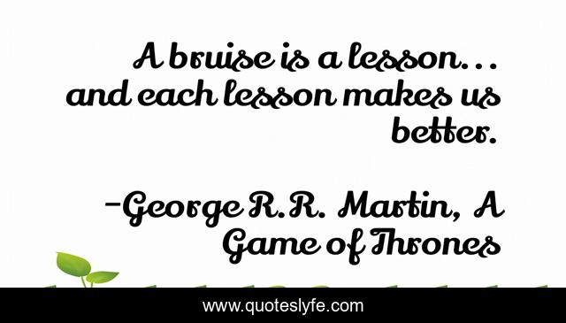 "George R.R. Martin, A Game of Thrones Quotes." Quoteslyfe.com, 2025. Fri. 05 Dec. 2025. <https://www.quoteslyfe.com/quote/A-bruise-is-a-lesson-and-each-28294>.