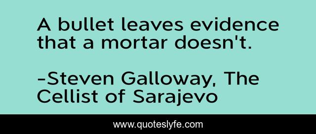 "Steven Galloway, The Cellist of Sarajevo Quotes." Quoteslyfe.com, 2025. Fri. 05 Dec. 2025. <https://www.quoteslyfe.com/quote/A-bullet-leaves-evidence-that-a-mortar-194662>.