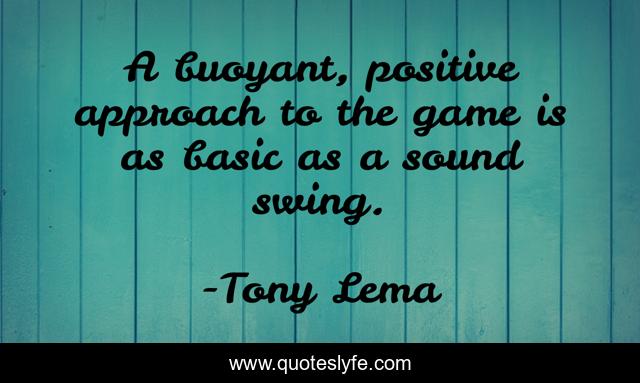 This page presents the quote "A buoyant, positive approach to the game is as basic as a sound swing.". Author of this quote is Tony Lema. This quote is about sound, game, swing,.