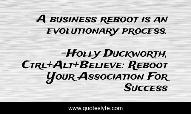 "Holly Duckworth, Ctrl+Alt+Believe: Reboot Your Association For Success Quotes." Quoteslyfe.com, 2025. Fri. 05 Dec. 2025. <https://www.quoteslyfe.com/quote/A-business-reboot-is-an-evolutionary-process-121262>.