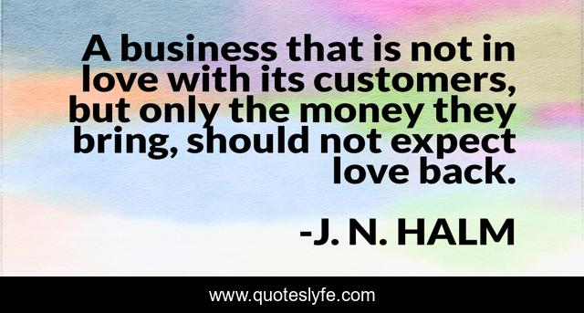 This page presents the quote "A business that is not in love with its customers, but only the money they bring, should not expect love back.". Author of this quote is J. N. HALM. This quote is about marketing, business, customer-service,.