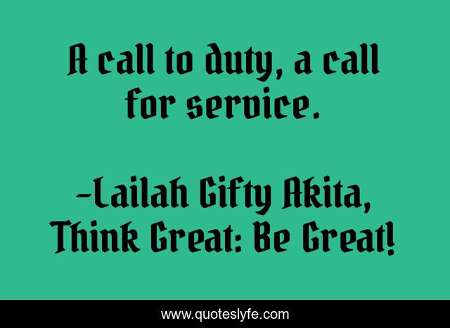 "Lailah Gifty Akita, Think Great: Be Great! Quotes." Quoteslyfe.com, 2025. Sat. 06 Dec. 2025. <https://www.quoteslyfe.com/quote/A-call-to-duty-a-call-for-142156>.