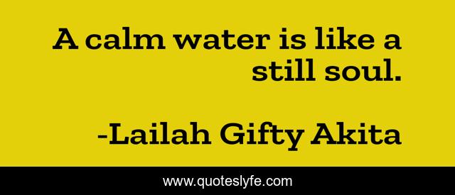 This page presents the quote "A calm water is like a still soul.". Author of this quote is Lailah Gifty Akita. This quote is about water, stillness, calm, inspirational, enthusiasm, still,.