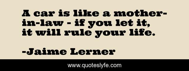 This page presents the quote "A car is like a mother-in-law - if you let it, it will rule your life.". Author of this quote is Jaime Lerner. This quote is about life, mother-in-law,.