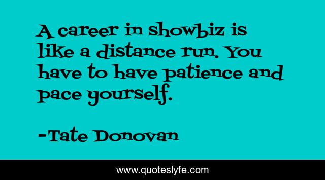 This page presents the quote "A career in showbiz is like a distance run. You have to have patience and pace yourself.". Author of this quote is Tate Donovan. This quote is about career, yourself,.