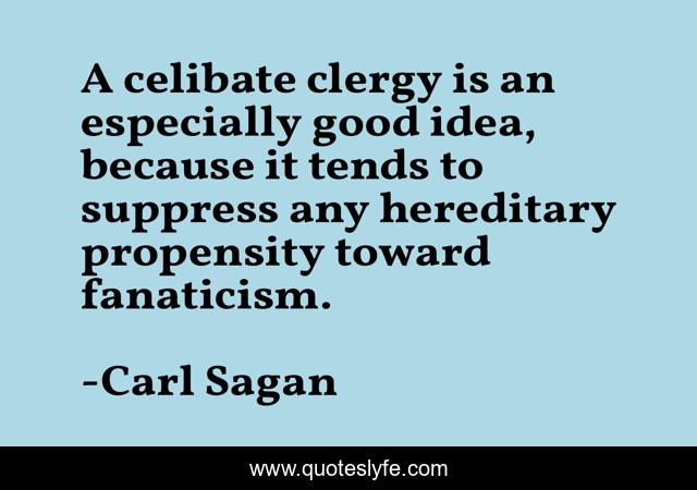 This page presents the quote "A celibate clergy is an especially good idea, because it tends to suppress any hereditary propensity toward fanaticism.". Author of this quote is Carl Sagan. This quote is about science, life, religion, zealotry, organized-religion,.