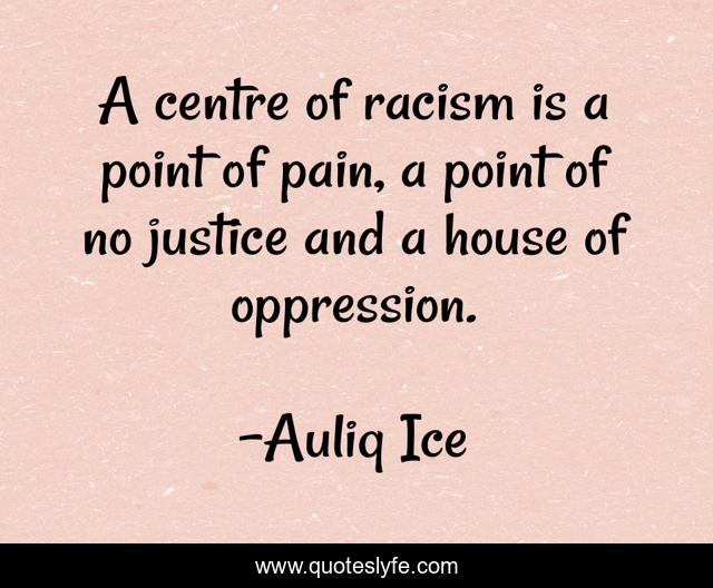 This page presents the quote "A centre of racism is a point of pain, a point of no justice and a house of oppression.". Author of this quote is Auliq Ice. This quote is about justice, racism, auliq-ice,.