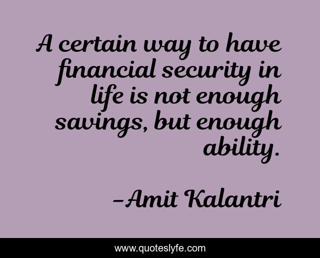 "Amit Kalantri Quotes." Quoteslyfe.com, 2025. Sat. 06 Dec. 2025. <https://www.quoteslyfe.com/quote/A-certain-way-to-have-financial-security-165042>.