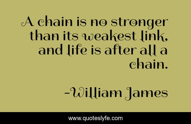 This page presents the quote "A chain is no stronger than its weakest link, and life is after all a chain.". Author of this quote is William James. This quote is about stronger, chain,.