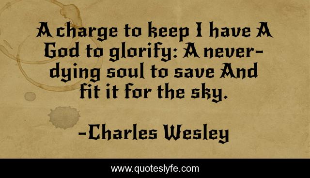 This page presents the quote "A charge to keep I have A God to glorify: A never-dying soul to save And fit it for the sky.". Author of this quote is Charles Wesley. .