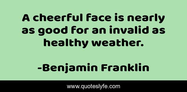 This page presents the quote "A cheerful face is nearly as good for an invalid as healthy weather.". Author of this quote is Benjamin Franklin. .
