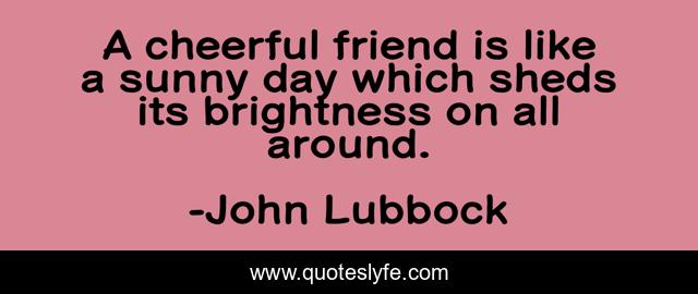 "John Lubbock Quotes." Quoteslyfe.com, 2025. Fri. 05 Dec. 2025. <https://www.quoteslyfe.com/quote/A-cheerful-friend-is-like-a-sunny-265897>.