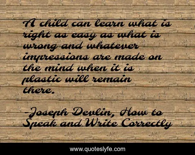 "Joseph Devlin, How to Speak and Write Correctly Quotes." Quoteslyfe.com, 2025. Fri. 05 Dec. 2025. <https://www.quoteslyfe.com/quote/A-child-can-learn-what-is-right-225437>.