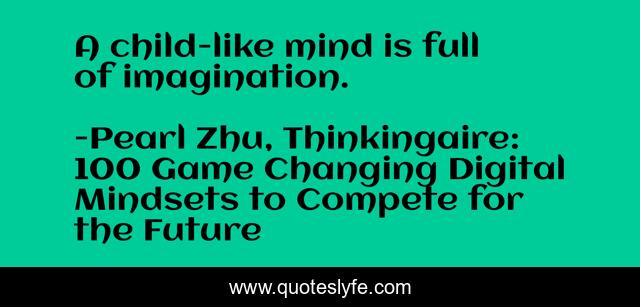 This page presents the quote "A child-like mind is full of imagination.". Author of this quote is Pearl Zhu, Thinkingaire: 100 Game Changing Digital Mindsets to Compete for the Future. This quote is about creatvity, imagination,.
