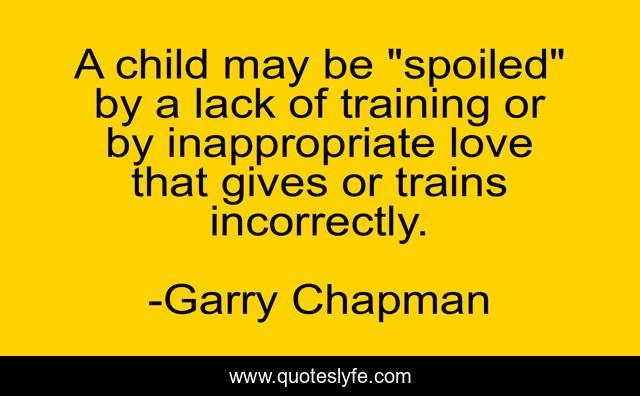 This page presents the quote "A child may be "spoiled" by a lack of training or by inappropriate love that gives or trains incorrectly.". Author of this quote is Garry Chapman. This quote is about parenting, love, children, affection,.