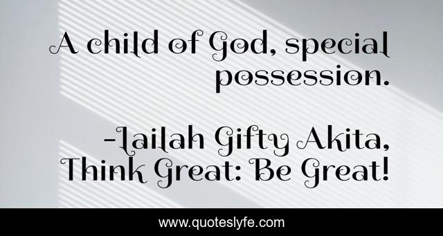 "Lailah Gifty Akita, Think Great: Be Great! Quotes." Quoteslyfe.com, 2025. Mon. 08 Dec. 2025. <https://www.quoteslyfe.com/quote/A-child-of-God-special-possession-99878>.