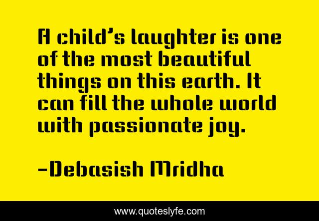 This page presents the quote "A child’s laughter is one of the most beautiful things on this earth. It can fill the whole world with passionate joy.". Author of this quote is Debasish Mridha. This quote is about passionate-joy, philosophy, debasish-mridha, most-beautiful-things-on-earth, quotes, debasish-mridha-md, inspirational, a-child-s-laughter, enthusiasm,.