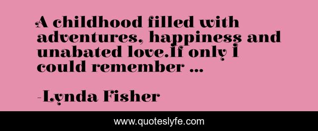 This page presents the quote "A childhood filled with adventures, happiness and unabated love.If only I could remember ...". Author of this quote is Lynda Fisher. This quote is about enthusiasm, legacy, inspirational, writing,.