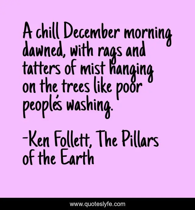 "Ken Follett, The Pillars of the Earth Quotes." Quoteslyfe.com, 2025. Sat. 06 Dec. 2025. <https://www.quoteslyfe.com/quote/A-chill-December-morning-dawned-with-rags-165570>.
