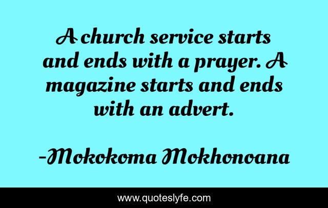 "Mokokoma Mokhonoana Quotes." Quoteslyfe.com, 2025. Mon. 08 Dec. 2025. <https://www.quoteslyfe.com/quote/A-church-service-starts-and-ends-with-193770>.