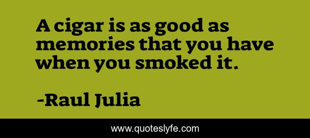 "Raul Julia Quotes." Quoteslyfe.com, 2025. Mon. 08 Dec. 2025. <https://www.quoteslyfe.com/quote/A-cigar-is-as-good-as-memories-303456>.