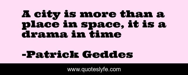 This page presents the quote "A city is more than a place in space, it is a drama in time". Author of this quote is Patrick Geddes. This quote is about urban-planning, city, city-life, urban,.