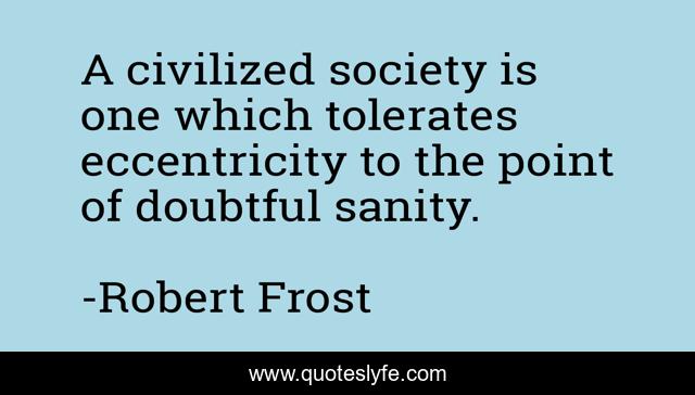 This page presents the quote "A civilized society is one which tolerates eccentricity to the point of doubtful sanity.". Author of this quote is Robert Frost. This quote is about sanity, which, point,.