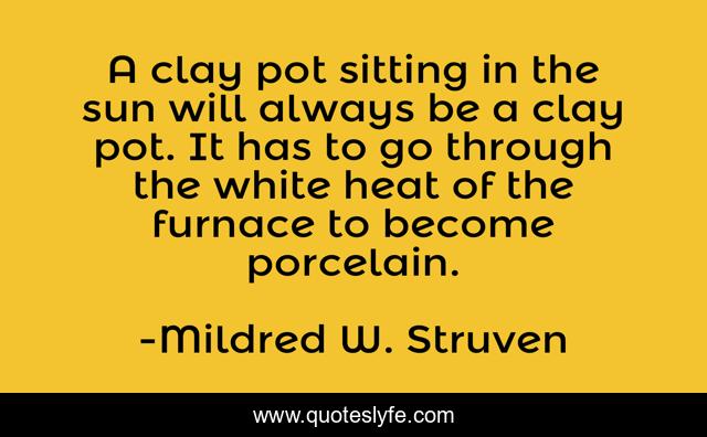 This page presents the quote "A clay pot sitting in the sun will always be a clay pot. It has to go through the white heat of the furnace to become porcelain.". Author of this quote is Mildred W. Struven. .