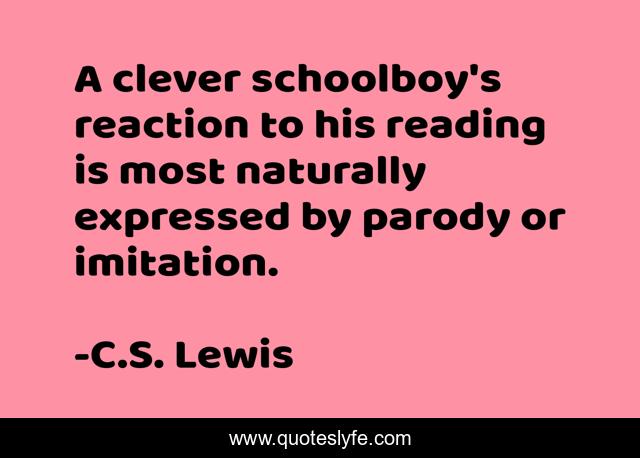 This page presents the quote "A clever schoolboy's reaction to his reading is most naturally expressed by parody or imitation.". Author of this quote is C.S. Lewis. This quote is about criticism, literary-theory, education, reading,.