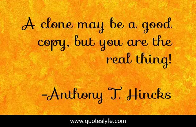 "Anthony T. Hincks Quotes." Quoteslyfe.com, 2025. Sat. 06 Dec. 2025. <https://www.quoteslyfe.com/quote/A-clone-may-be-a-good-copy-177506>.