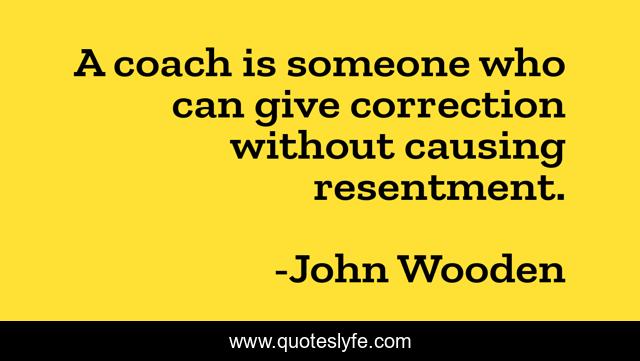 This page presents the quote "A coach is someone who can give correction without causing resentment.". Author of this quote is John Wooden. This quote is about corrections, criticism, coaching,.