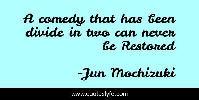 This page presents the quote "A comedy that has been divide in two can never be Restored". Author of this quote is Jun Mochizuki. .