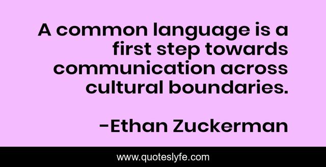 This page presents the quote "A common language is a first step towards communication across cultural boundaries.". Author of this quote is Ethan Zuckerman. This quote is about first step, step, language,.