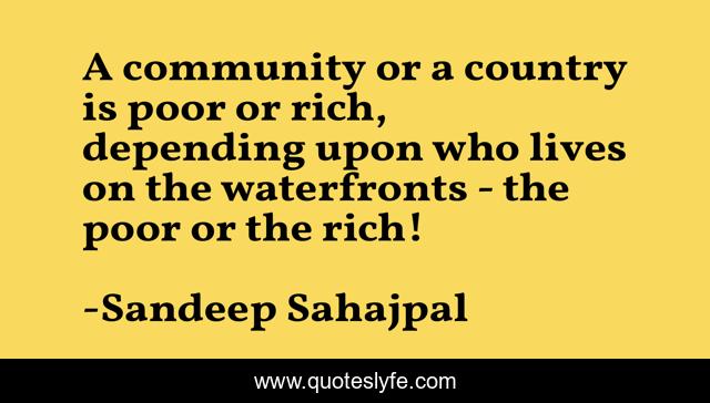 This page presents the quote "A community or a country is poor or rich, depending upon who lives on the waterfronts - the poor or the rich!". Author of this quote is Sandeep Sahajpal. .