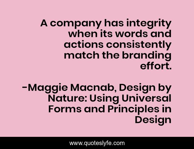 "Maggie Macnab, Design by Nature: Using Universal Forms and Principles in Design Quotes." Quoteslyfe.com, 2025. Sat. 06 Dec. 2025. <https://www.quoteslyfe.com/quote/A-company-has-integrity-when-its-words-256190>.