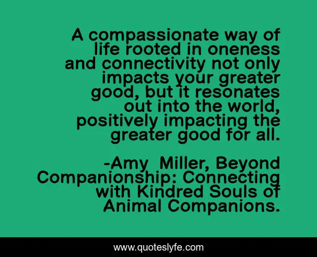 "Amy Miller, Beyond Companionship: Connecting with Kindred Souls of Animal Companions. Quotes." Quoteslyfe.com, 2025. Fri. 05 Dec. 2025. <https://www.quoteslyfe.com/quote/A-compassionate-way-of-life-rooted-in-253006>.