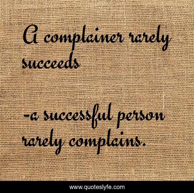 This page presents the quote "A complainer rarely succeeds". Author of this quote is a successful person rarely complains.. .