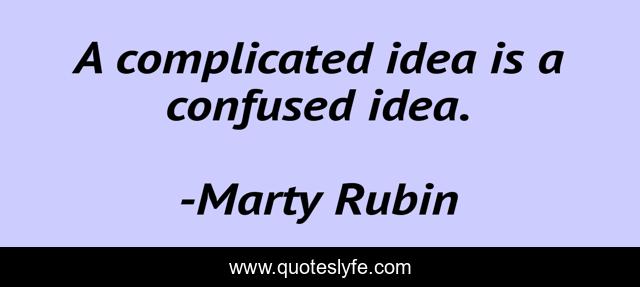 This page presents the quote "A complicated idea is a confused idea.". Author of this quote is Marty Rubin. This quote is about confusion, complexity, ideas,.