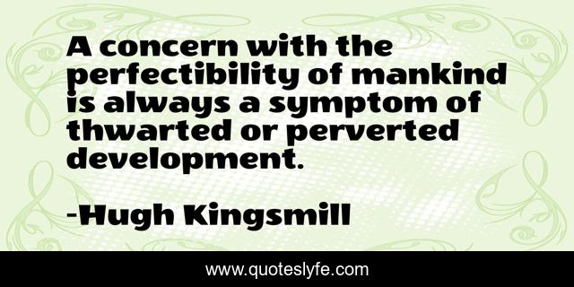 This page presents the quote "A concern with the perfectibility of mankind is always a symptom of thwarted or perverted development.". Author of this quote is Hugh Kingsmill. .