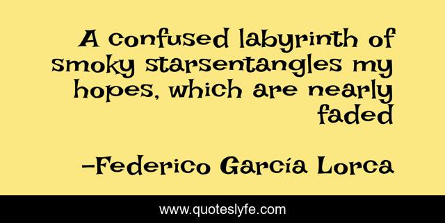 This page presents the quote "A confused labyrinth of smoky starsentangles my hopes, which are nearly faded". Author of this quote is Federico García Lorca. This quote is about labyrinth, confusion, hope, stars,.
