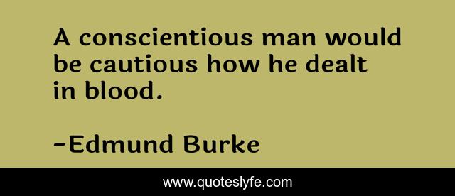 This page presents the quote "A conscientious man would be cautious how he dealt in blood.". Author of this quote is Edmund Burke. This quote is about responsibility, war,.