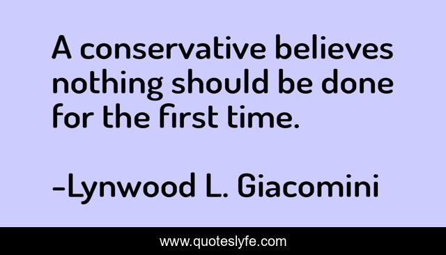 This page presents the quote "A conservative believes nothing should be done for the first time.". Author of this quote is Lynwood L. Giacomini. This quote is about belief, conviction,.