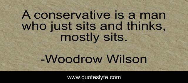 This page presents the quote "A conservative is a man who just sits and thinks, mostly sits.". Author of this quote is Woodrow Wilson. This quote is about man, just, conservative,.