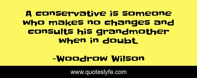 This page presents the quote "A conservative is someone who makes no changes and consults his grandmother when in doubt.". Author of this quote is Woodrow Wilson. This quote is about grandmother, doubt, changes,.