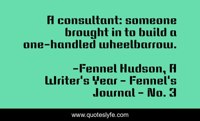 This page presents the quote "A consultant: someone brought in to build a one-handled wheelbarrow.". Author of this quote is Fennel Hudson, A Writer's Year - Fennel's Journal - No. 3. This quote is about consultant, business, consultancy,.