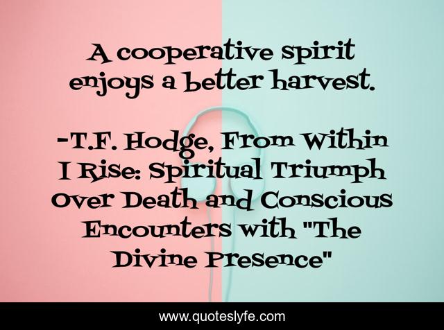 "T.F. Hodge, From Within I Rise: Spiritual Triumph Over Death and Conscious Encounters with "The Divine Presence" Quotes." Quoteslyfe.com, 2025. Mon. 08 Dec. 2025. <https://www.quoteslyfe.com/quote/A-cooperative-spirit-enjoys-a-better-harvest-139611>.