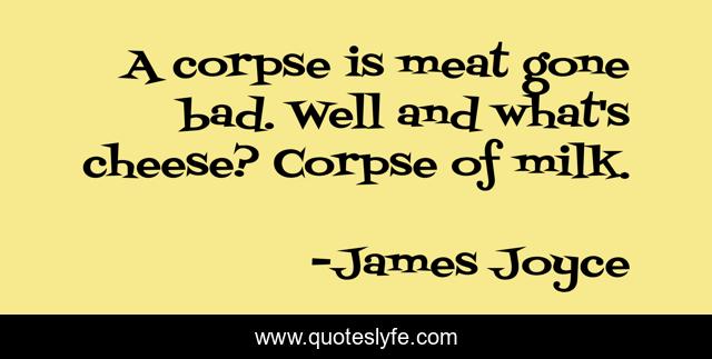 This page presents the quote "A corpse is meat gone bad. Well and what's cheese? Corpse of milk.". Author of this quote is James Joyce. This quote is about cheese, meat, milk,.